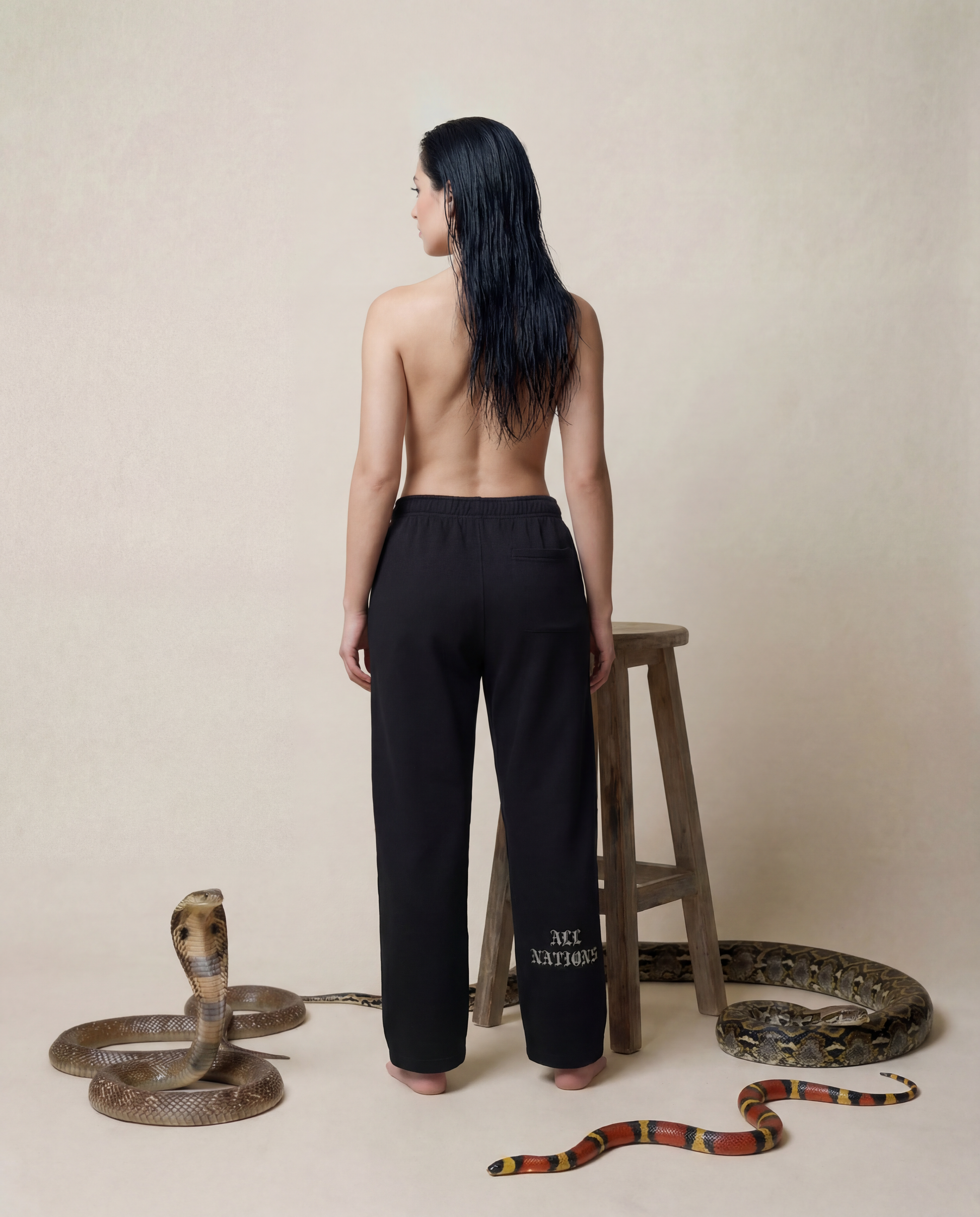 The All Nations Track Vessel is the definitive uniform for those sent to the corners of the earth. In a deep, unyielding black, this piece carries the weight of the Great Commission. Featuring the "MATTHEW 28:19" mandate on the left thigh and the "ALL NATIONS" declaration on the back calf, these pants are a physical witness that your mission is moving.